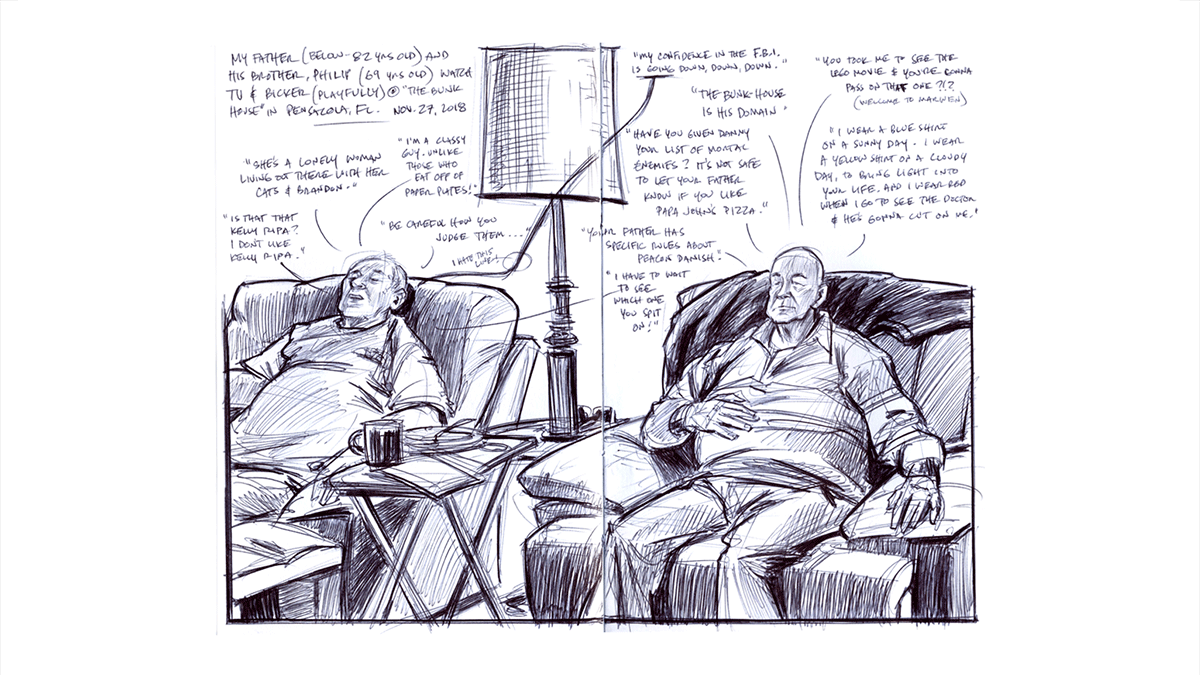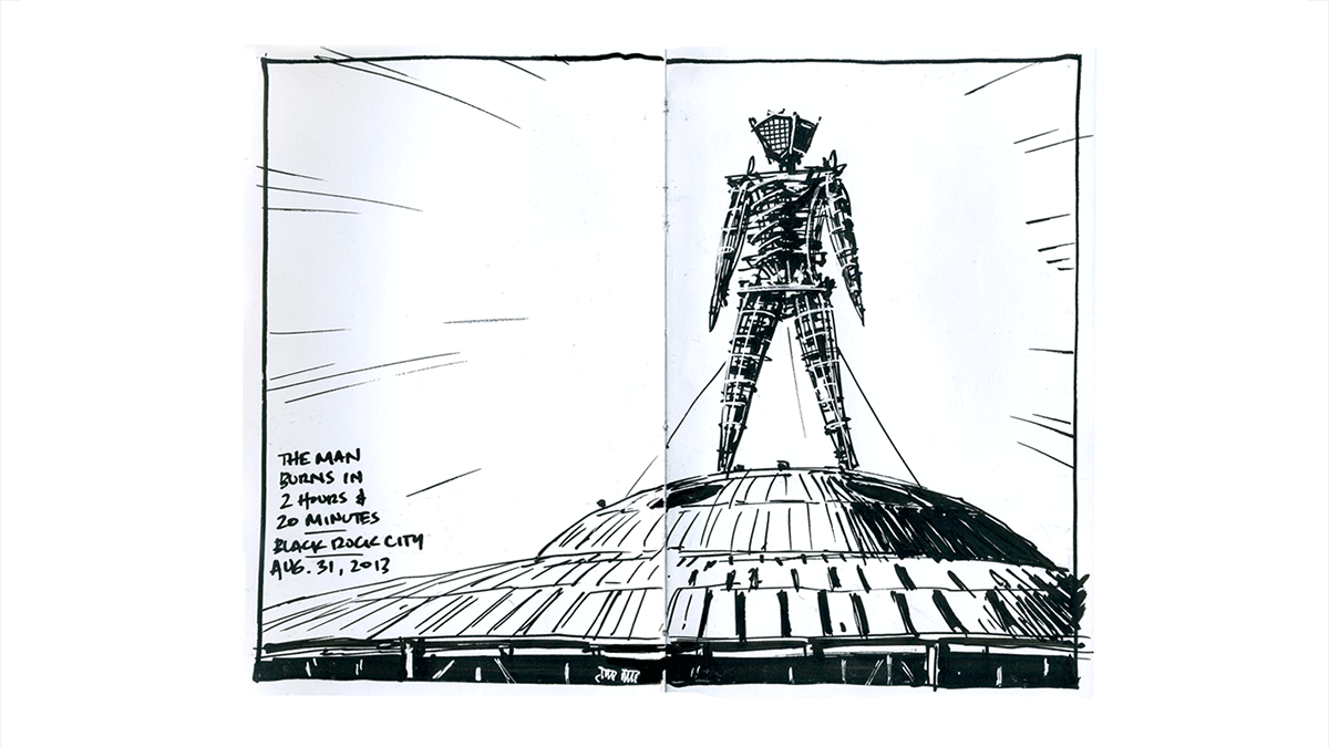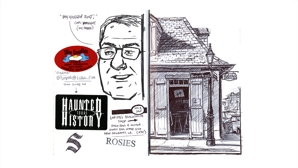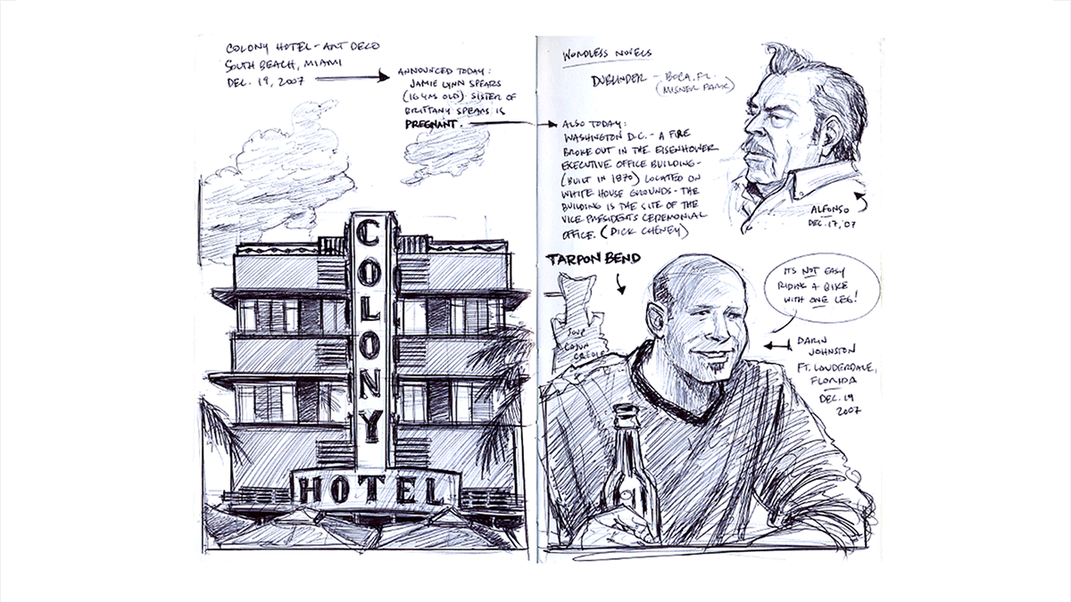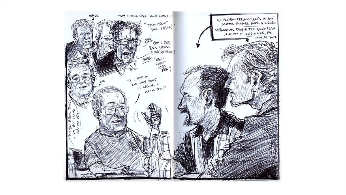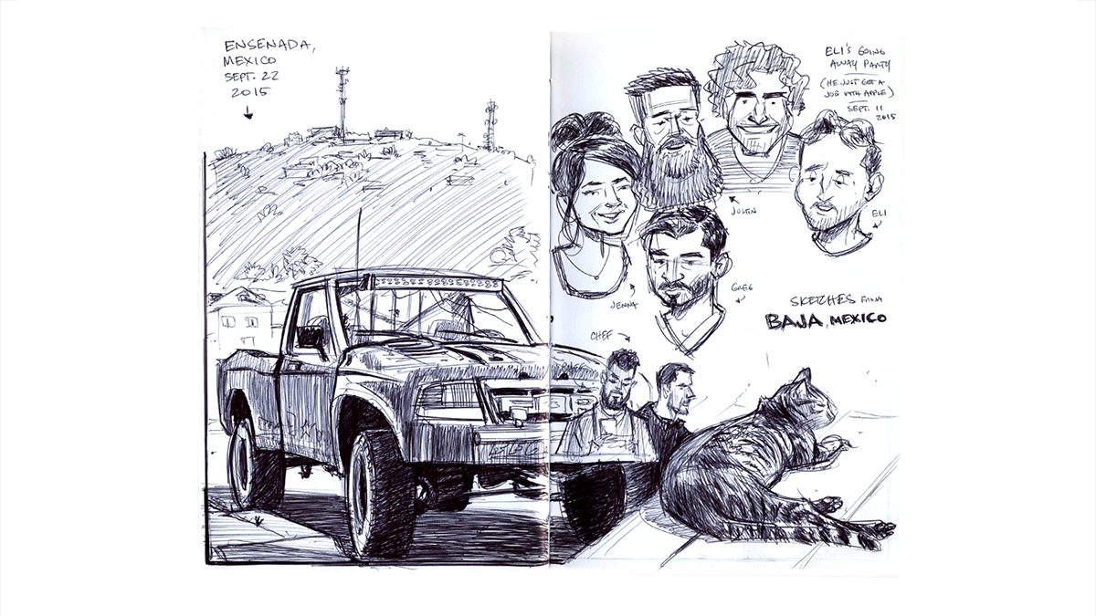 Where ever Dan goes, he tends to bring his sketchbook with him. Most of the subjects he draws are of a personal nature, either family or friends or places he’s traveled or lived. Travel is a big passion of his, and that’s clearly evident from the work contained here. Dan approaches his sketches as if photography doesn’t exist; as if these sketches were the only way to share and remember where he’s been.